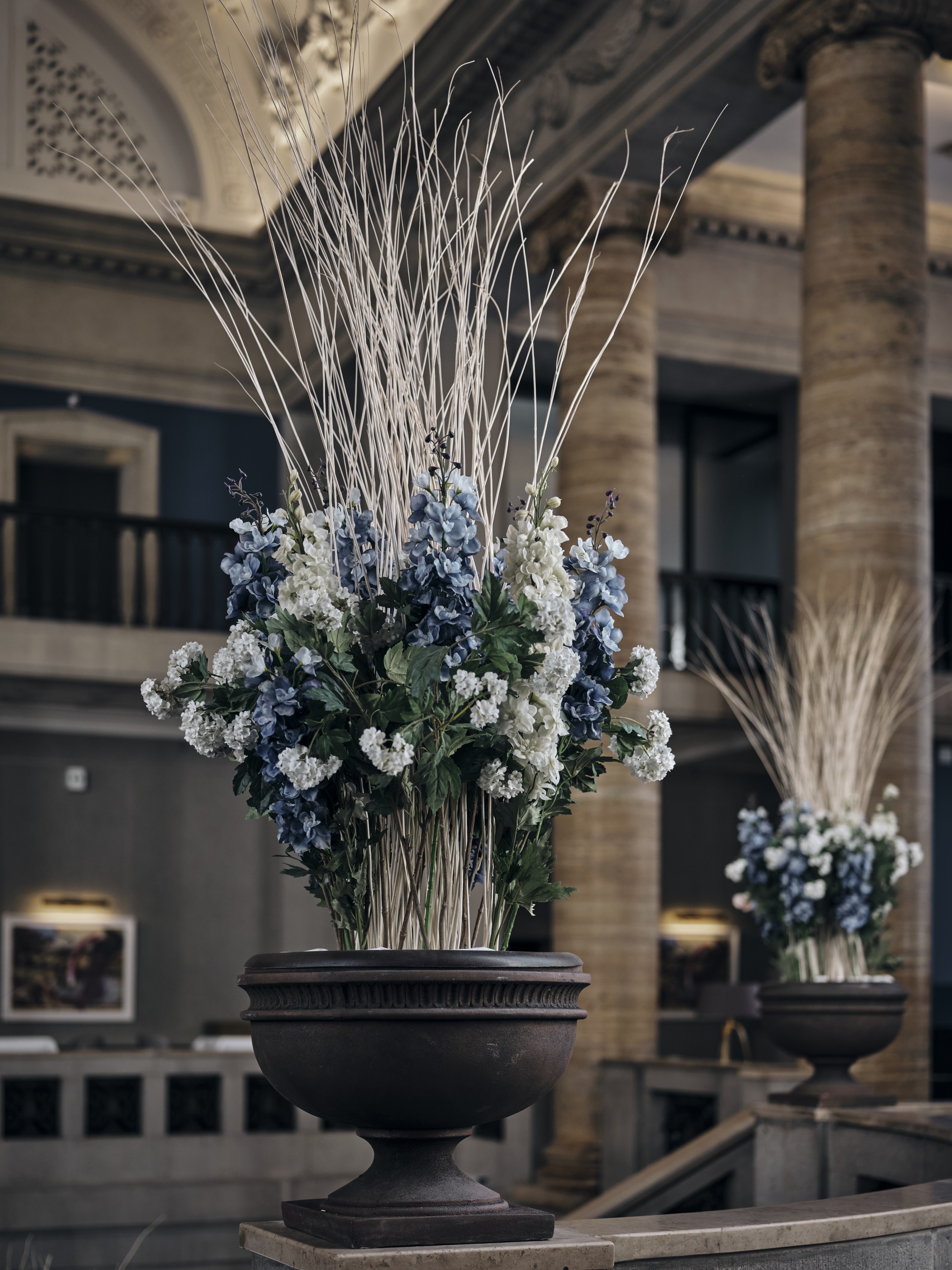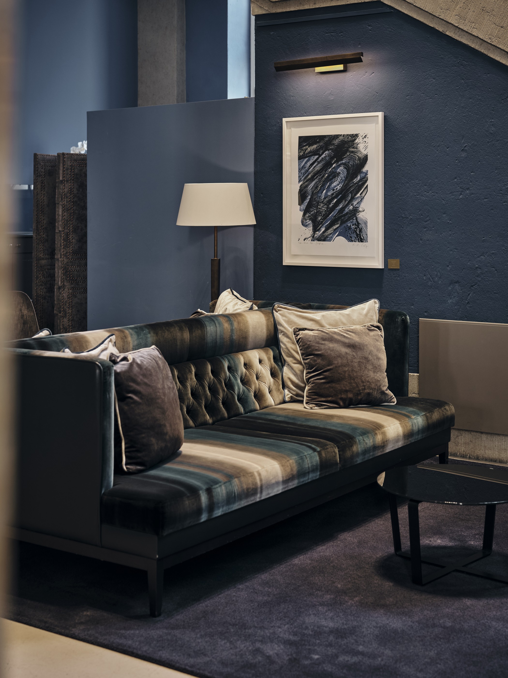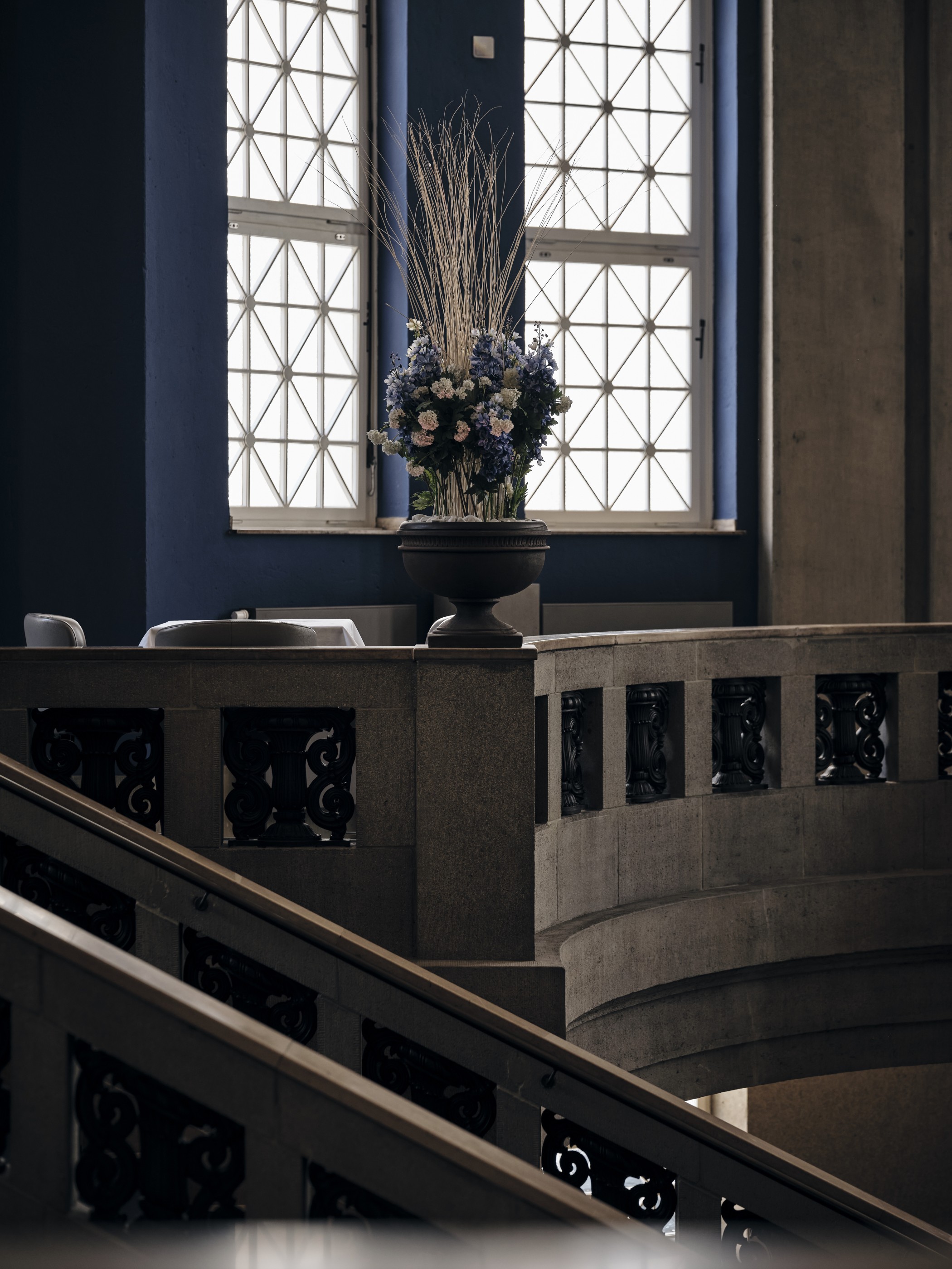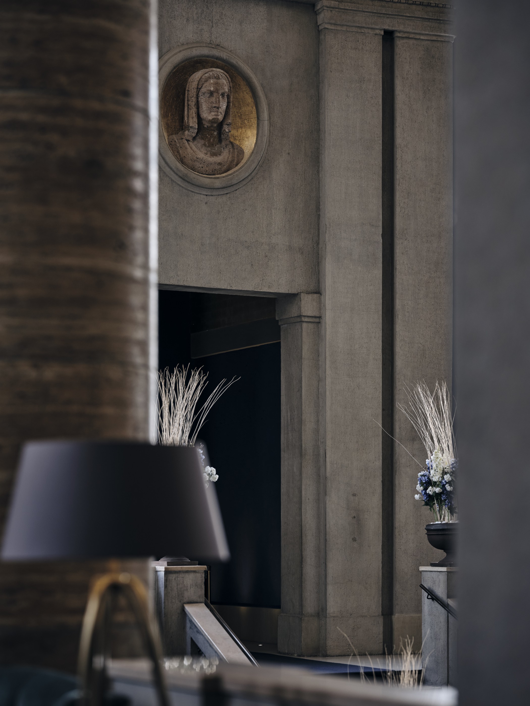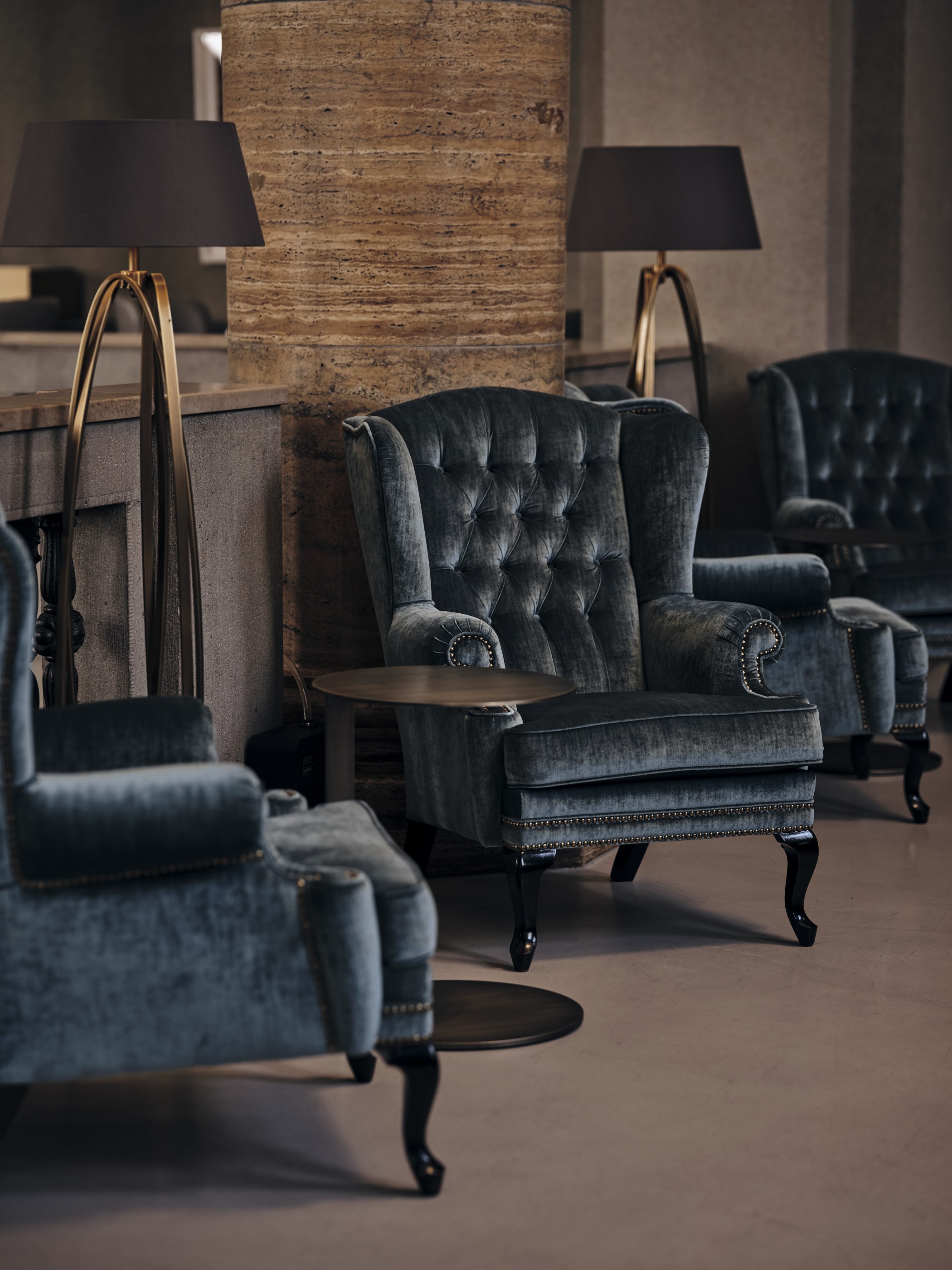 The gallery is located on the second floor of the large hall with the staircase and represents a further highlight in the living room of Düsseldorf. It surrounds the hall and forms smaller, protected niches. From up here, you not only have an excellent view of the action in the lobby, you can also retreat to the comfortably furnished niches. Whether you are seeking to hold confidential talks or stimulating discussions in a discreet environment, or simply to escape the hustle and bustle on the ground floor for a while, the mezzanine level is the perfect place to do so.