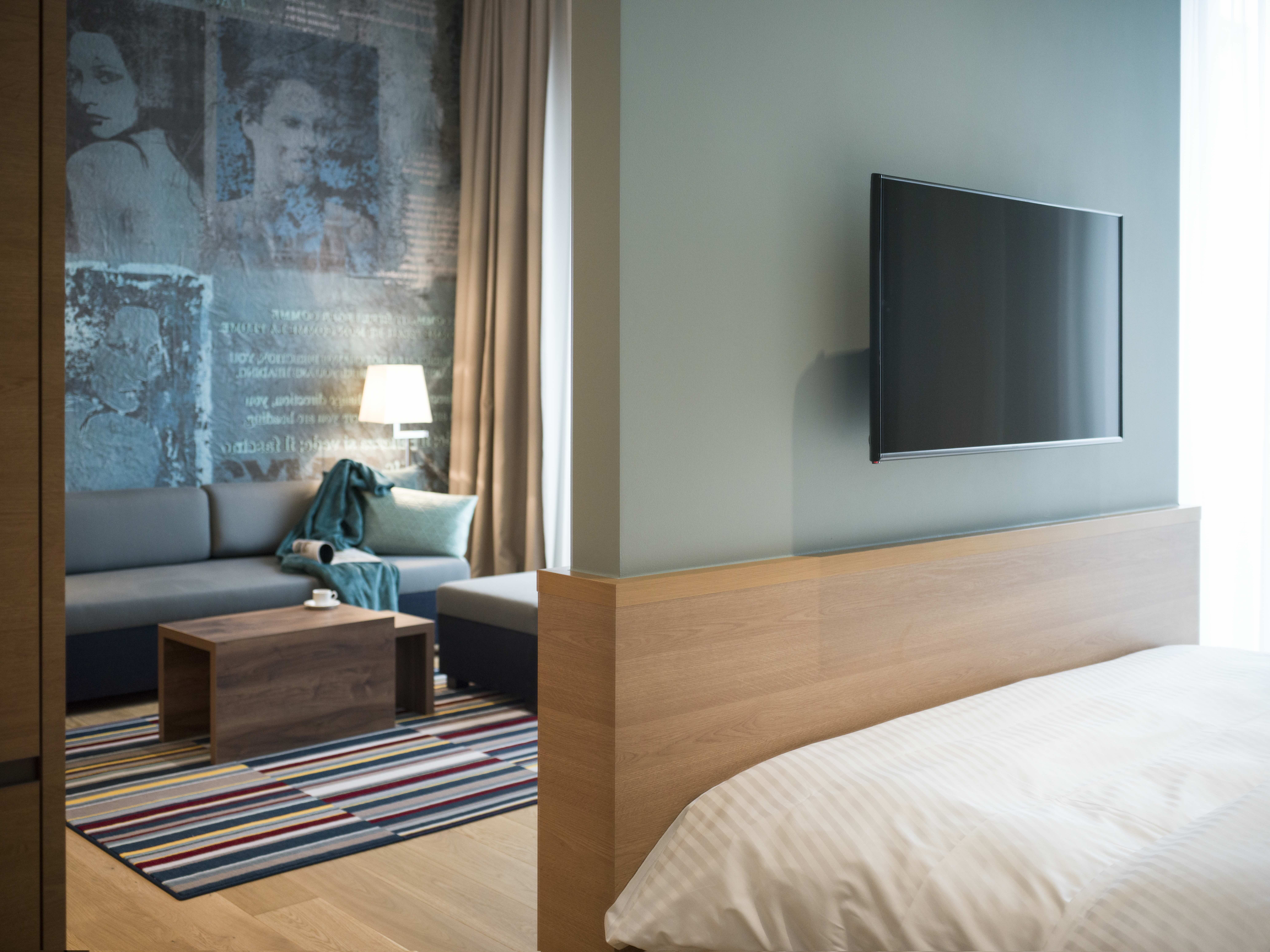 Große Ideen brauchen große Räume. Die Executive Suiten weisen Flächen bis zu 99 Quadratmetern und Deckenhöhen von vier Metern auf. Die Räume selbst sind in einen Schlaf-, Wohn- und Arbeitsbereich aufgeteilt. Ideal also für Menschen, die nie ganz fertig mit ihrer Arbeit sind. Gleichzeitig fühlt man sich dank der modernen und komfortablen Einrichtung sofort zuhause.